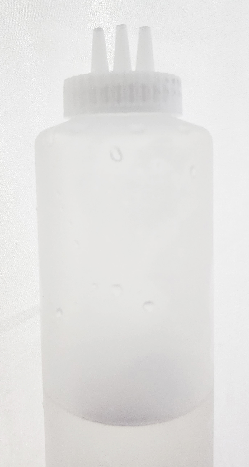 저는 케첩 용기로 나온 구멍 3개짜리 용기를 사용합니다. 구멍의 굵기는 내가 원하는 크기로 잘라서 사용할 수 있어서 좋습니다.
